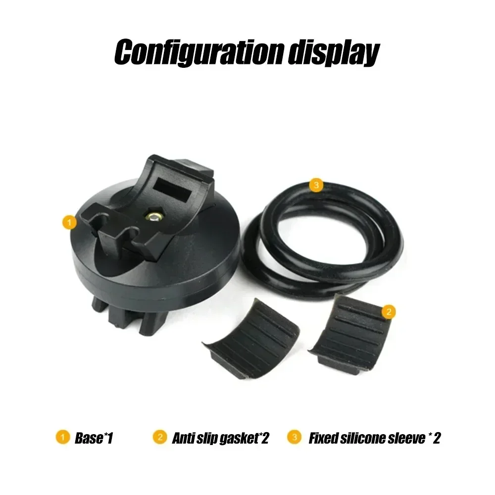 Specifications: 1. Material: plastic+silicone 2. Size: approximately 48 * 35mm 3. Color: Black 4. Quantity: 1pc 5. Packaging includes: 1 * Bicycle lamp holder